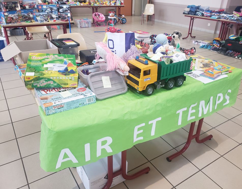 Ce dimanche 11 juin, nous étions au pucier du sac à jouet pour tenir notre stand de vente de jeux , livres et jouets.